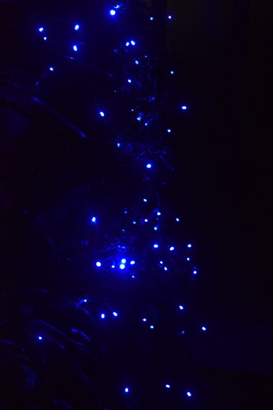 イルミネーションを買いました。太陽光発電の優れものです。890円でした。まるで 銀河のようですね。