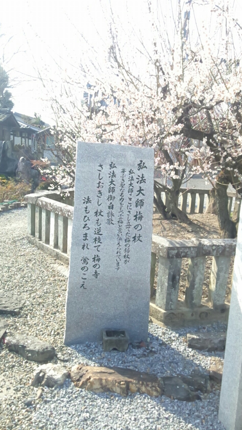 さしおきし 杖も逆枝て 梅の寺 法もひろまれ 鶯のこえ 弘法大使の自句です。
