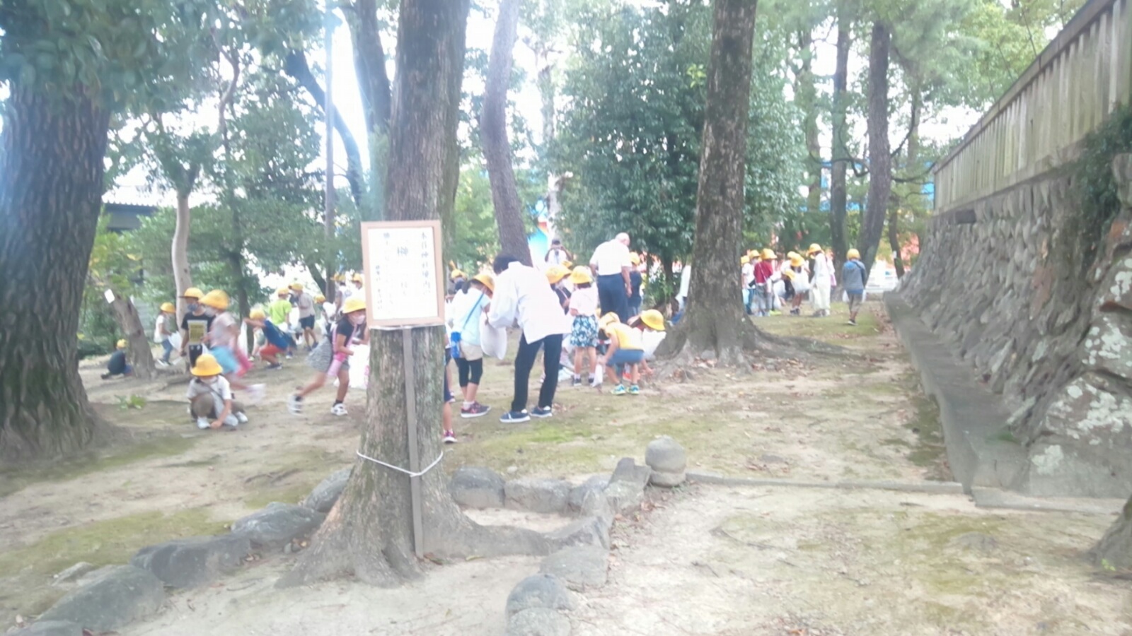 。本荘神社へ小学生が課外授業できました。松ぼっくりとどんぐりを拾っていきました。