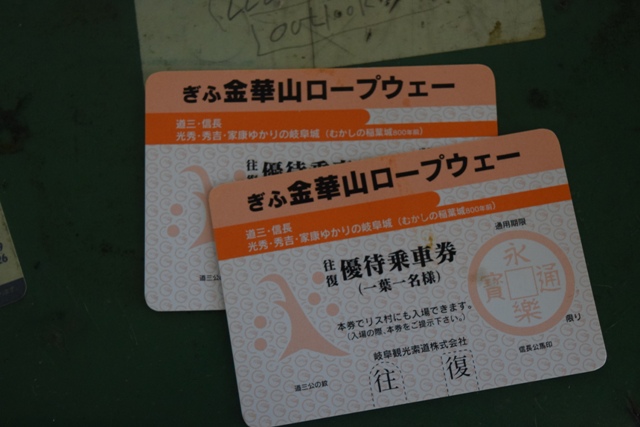 賞品として金華山ロープウェイの往復優待券が、ペアで、もらえました。