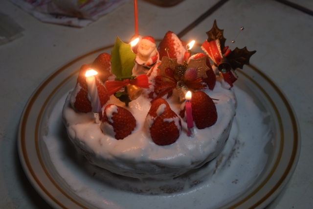 12/24の夜はクリスマスイブです。ケーキを作りました。手作りケーキです。