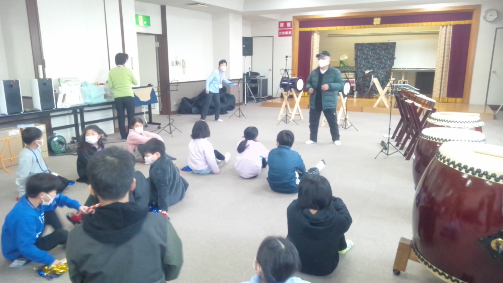雨乞い踊りの練習がありました。小学生が集まりました。