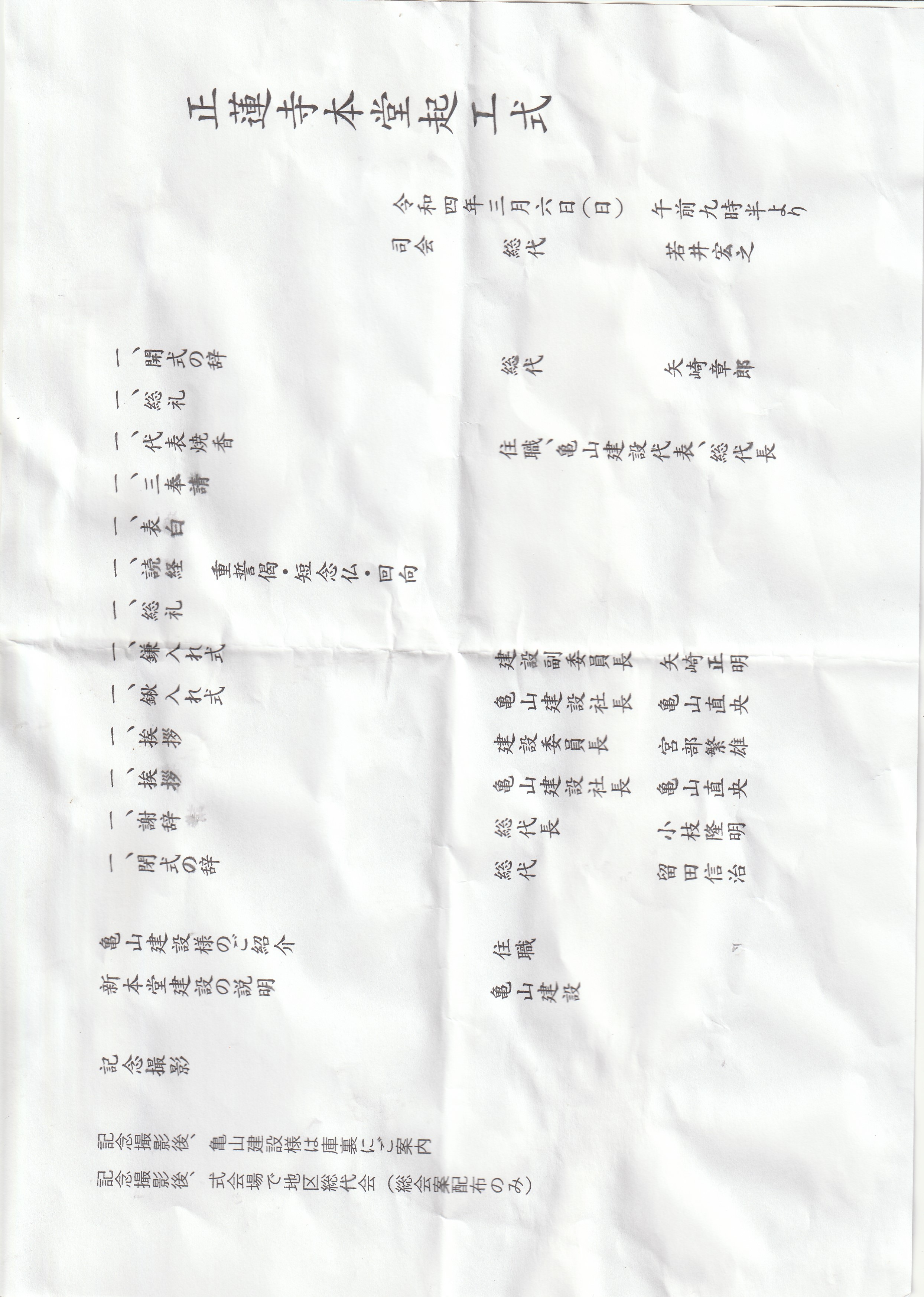 正蓮寺本堂起工式へ行ってきました。我が家の主唱寺です。