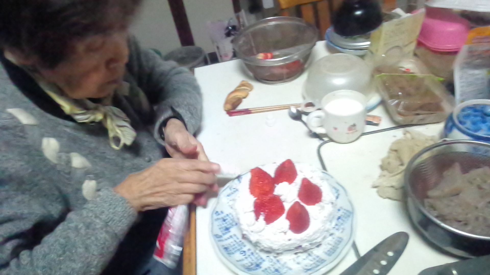 母親が86歳の誕生日を明日迎えます。ケーキを作りました。