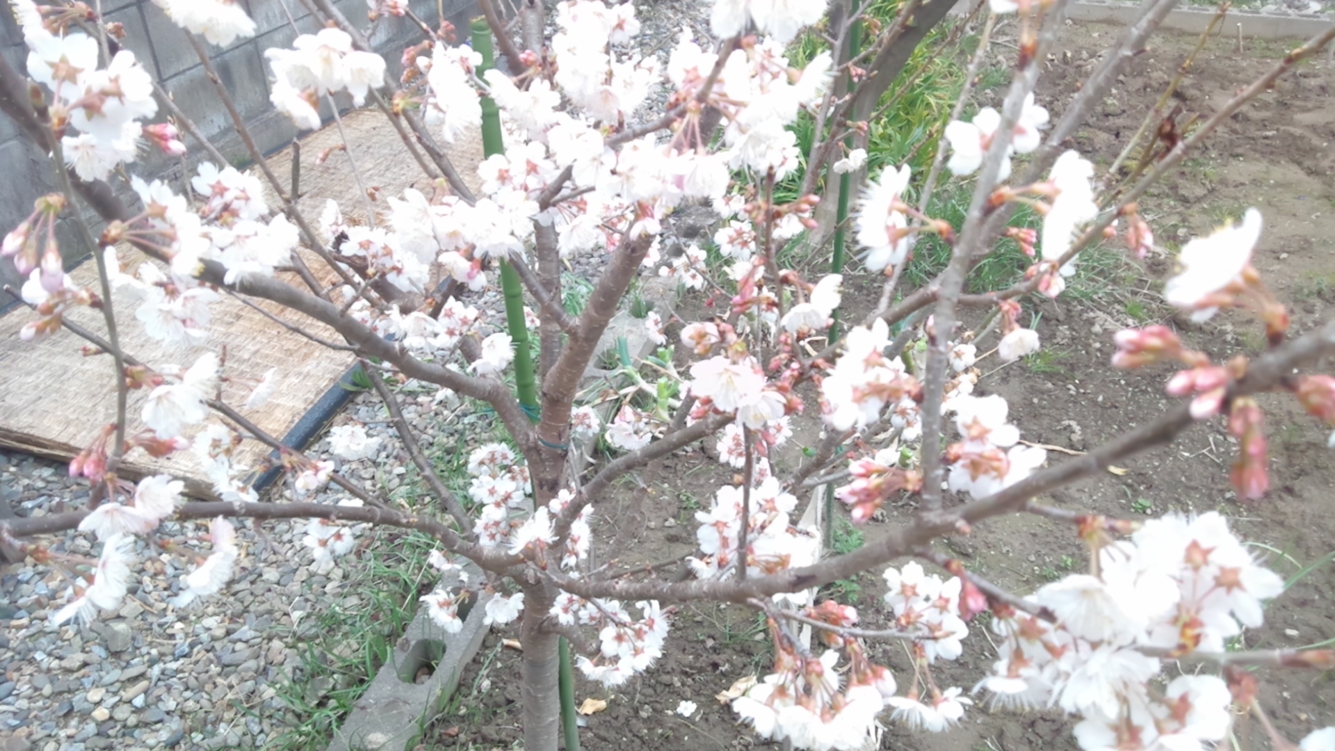 家庭菜園のさくらんぼが花をつけました。